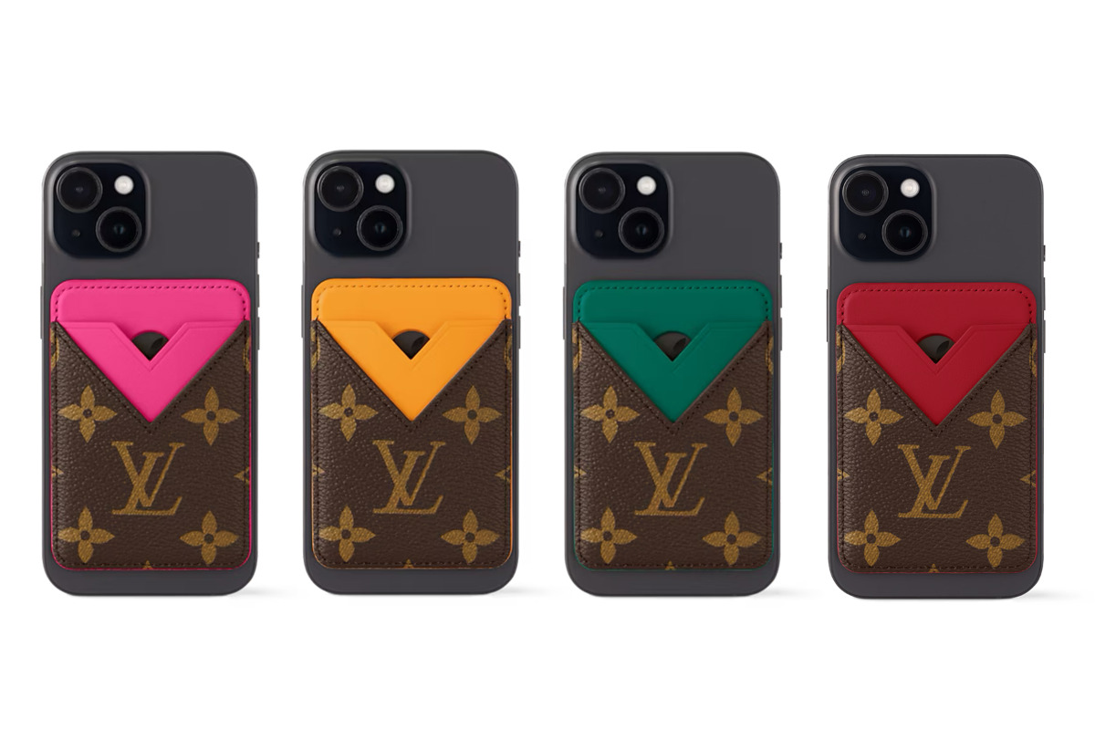 Louis Vuitton 則以更多樣化的設計,讓 MagSafe 銀包成為時尚界的新寵。以 Autres Toiles Porte-Cartes Magnet 為例,品牌通過拼貼工藝,將經典的 Monogram 花紋與皮革結合,打造出帶有現代藝術感的中性設計,既時尚又前衛。如果追求更大膽吸睛的款式,筆者強烈推薦 Louis Vuitton Monogram Macassar Canvas Porte-Cartes Magnet,這款銀包以品牌標誌性的 Monogram Canvas 為基底,結合綠色、桃紅色、紅色、黃色四種拼接皮革,視覺效果浮誇且充滿活力,絕對能成為造型中的亮點。同時,它的價格也非常親民,僅需 HK$3,150,是入門級奢華的不二之選。