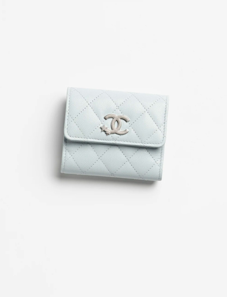 作為奢侈品界的經典代表品牌,Chanel 一直以優雅與精緻著稱,其銀包系列更是經典中的經典。與以往偏愛經典黑色的設計不同,最新 2025/26 秋冬系列融入更多令人驚喜的色彩與細節,Chanel Small Double Wallet 選用 Baby Blue 的閃亮粒紋小牛皮,清新柔和的色調讓人一見傾心。正面刻有細膩紋理的大尺寸雙C標誌,搭配閃亮水鑽點綴的星星細節,為銀包增添一份俏皮與活力。另一款值得推薦的是 Small Flap Wallet,以深棕色的粒紋山羊皮製成,低調中散發奢華質感。銀包正面搭配品牌標誌性的雙C Logo,簡約而不失大氣,柔軟的皮質與精緻的金屬細節完美結合,展現了 Chanel 一貫的高級美學與實用性。