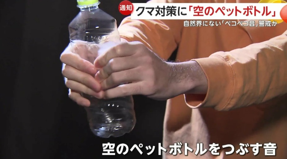 日本政府「文部科学省」表示擠壓空膠樽所發出的「啪啪」聲或可嚇退熊!(圖片來源:FNN News)