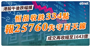 恒指全日升61點收報26095,受制20天線,成交降至1782億元 02/12/2025 16:12