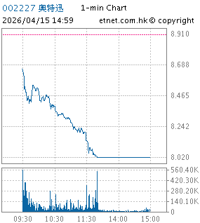 | 002227 | 奥特迅 | 8.020 | -0.890 | -9.989% | 1.23亿 | -- | 深股通 | |