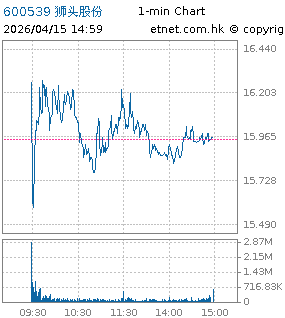 | 600539 | 狮头股份 | 15.960 | +0.010 | +0.063% | 5.44亿 | -- | ||
