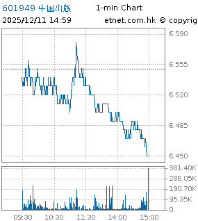 | 601949 | 中国出版 | 6.550 | -0.070 | -1.057% | 8.21千万 | 19.3672 | 沪股通 | |