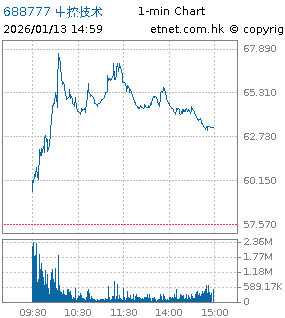 | 688777 | 中控技术 | 63.270 | +5.700 | +9.901% | 54.31亿 | 44.5563 | 沪股通 # | |