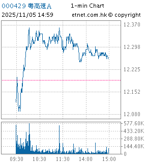 | 000429 | 粵高速A | 12.260 | +0.070 | +0.574% | 2.14億 | 16.3467 | 深股通 | |