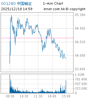 | 001280 | 中國鈾業 | 65.150 | +0.500 | +0.773% | 7.90億 | -- | ||