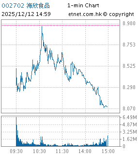 | 002702 | 海欣食品 | 8.090 | -0.870 | -9.710% | 11.12億 | -- | 深股通 | |
