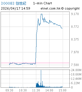 | 300083 | 創世紀 # | 8.730 | +14.267% | |