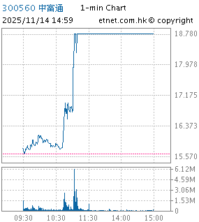| 300560 | 中富通 | 18.780 | +3.130 | +20.000% | 10.70億 | -- | ||