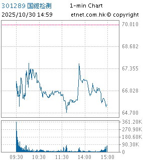 | 301289 | 國纜檢測 | 65.170 | -4.840 | -6.913% | 3.38億 | 67.1856 | ||