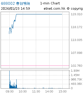 | 688002 | 睿創微納 | 123.310 | +20.550 | +19.998% | 18.42億 | 96.3359 | 滬股通 # | |