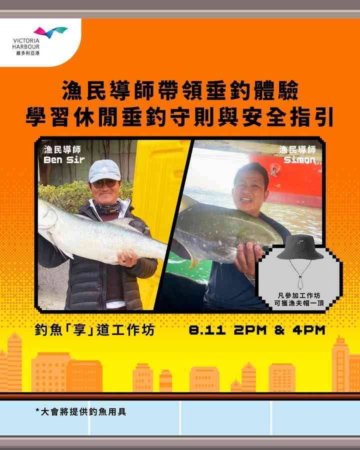優閒漁業社區平台「漁家嚮導」將與你細說北角碼頭垂釣今昔,歡迎大朋友同小朋友一齊嚟東岸板道享受垂釣體驗,認識釣魚用具、常見魚類,同休閒垂釣守則與安全指引!(歡迎六歲以上參加,須由家長陪同)大會仲會提供釣魚用具畀大家體驗!