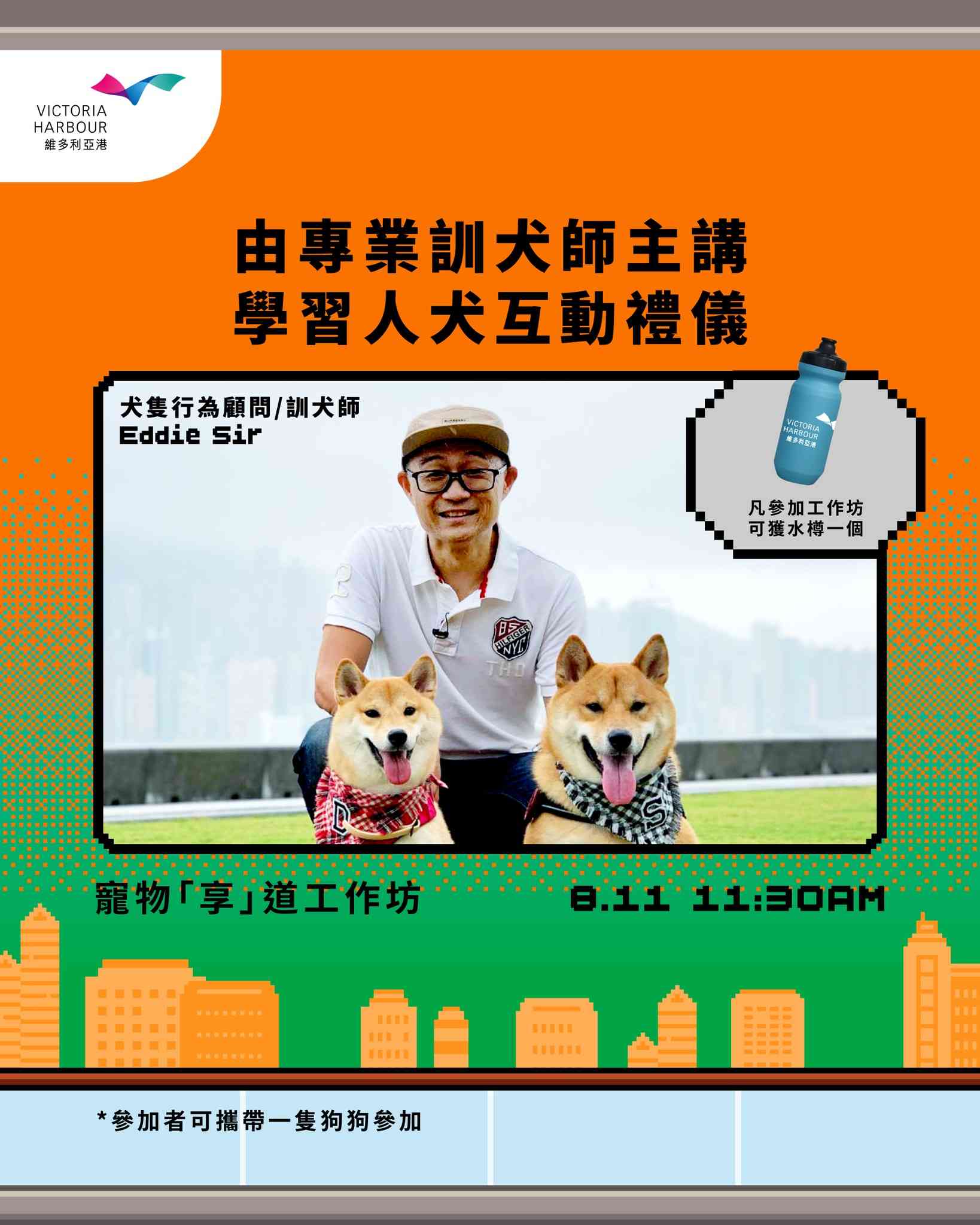 資深犬隻行為顧問及訓犬師Eddie Sir會教導寵主點樣以正向訓練,令狗狗學習喺多人嘅板道上保持冷靜,同行人友善互動!帶埋狗狗一齊體驗牽繩隨行,應對共享空間的實際挑戰。