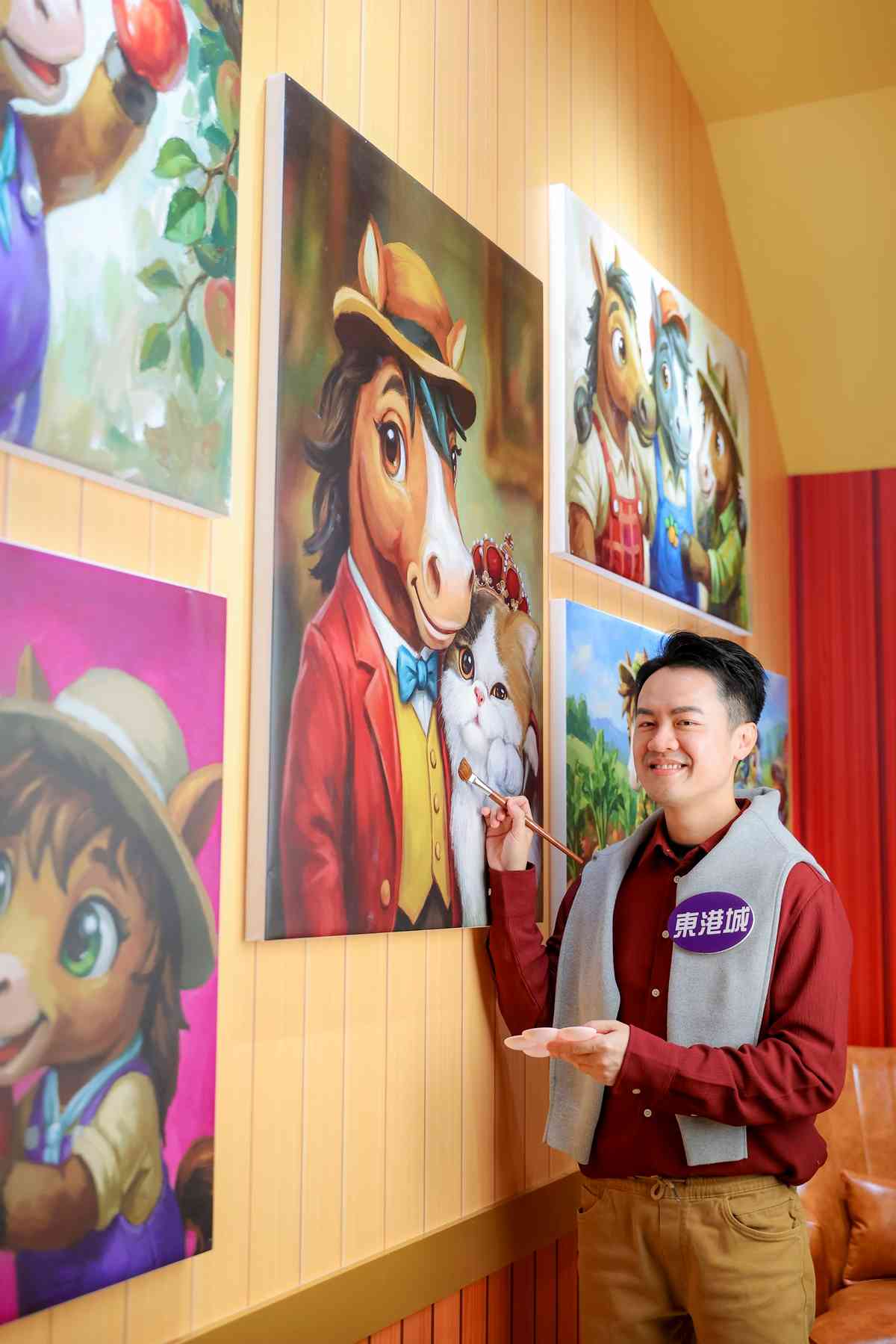 集繪畫與設計於一身的創作人LeonLollipop,擅於繪畫各種動物,亦是壁畫「托腮貓Gloomie」的原創者,他認為動物與人類之間往往有一種特殊的聯繫,特別喜歡在畫作裡把一些人類獨有的情緒投射在各種動物身上。是次特別為東港城「新春駿樂園」執起靈動妙筆,以「馬」的高貴和活力為靈感,為逾3,000呎的都市互動新春莊園獨家創作八大可愛駿馬角色,讓牠們化身農莊中擔任嚮導,與每位訪客親切互動。當中成熟穩重的樂園主人「馬天尼」帶領著夥伴攜手打理樂園,與訪客共享豐收喜悅;其他駿馬角色亦將驚喜現身,穿梭於不同園區。誠邀您跟隨牠們的腳步,與牠們互動打卡,解鎖場內「二維馬」,從中發掘不同駿馬角色品種背後的有趣知識,展開一場活潑愉快的農莊之旅!