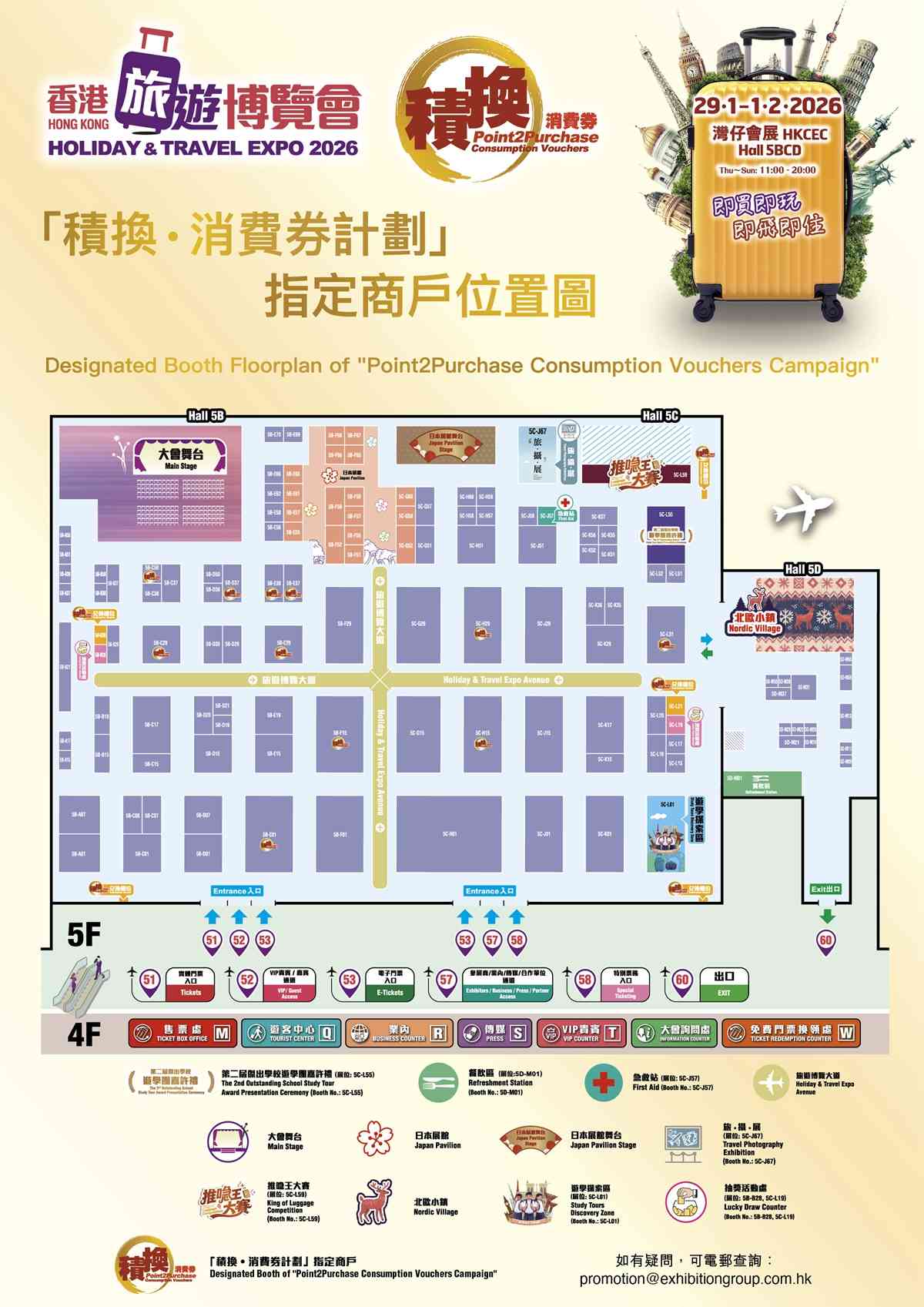 今年博覽會的旅遊博覽大道,以春、夏、秋、冬形式呈現,讓大家在現場一站式探索一年四季的旅遊熱點,為新一年的旅程提早規劃靈感,迎接無盡精彩!全新互動遊戲「推喼王大賽」亦首次登場,讓一眾民間高手及旅遊達人同場較勁,贏取豐富禮品。