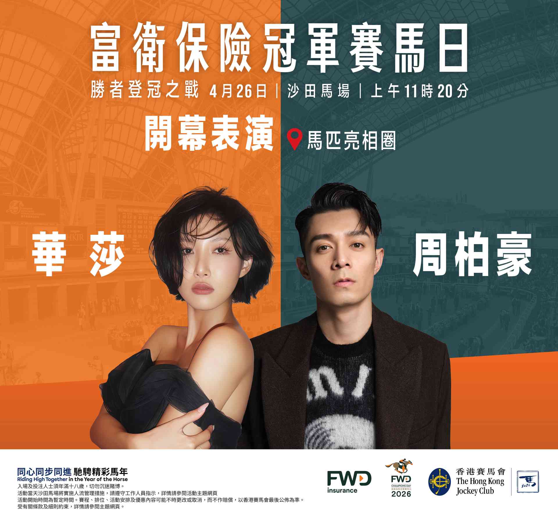 香港賽馬會與市民一起「同心同步同進,馳騁精彩馬年」,推出橫跨全年的馬年系列活動,彰顯人馬之間的非凡合作,透過一系列世界級賽馬盛事、馬術比賽,以及涵蓋文化、體育及親子元素的豐富活動,讓全城共慶同歡,推動本地旅遊,並促進馬匹運動和體育發展。一年一度的國際馬壇春季盛事「富衛保險冠軍賽馬日」即將於4月26日(星期日)在沙田馬場隆重舉行。作為最具代表性的國際賽馬盛會之一,「富衛保險冠軍賽馬日」不僅是世界頂級賽駒爭逐殊榮的舞台,更是香港展現國際體育娛樂魅力的重要平台,每年賽事均吸引大批本地市民以至內地及海外旅客齊聚沙田馬場,共同見證全球頂尖騎師及賽駒競逐冠軍殊榮,體驗香港獨有的賽馬文化。