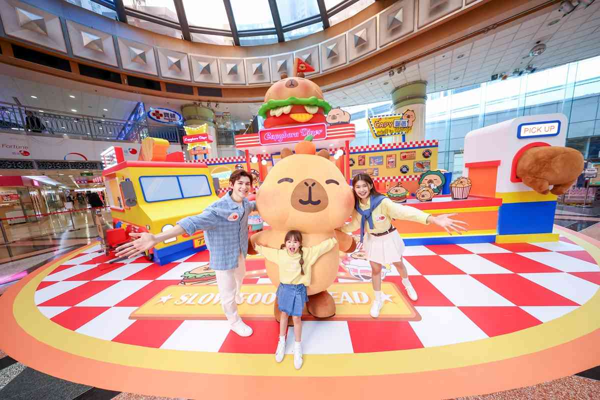 置富Malls呈獻的【CAPY豚長 Chill in Charge】,主角卡皮巴拉小黄豚,名字卡皮巴拉是自水豚英語Capybara直譯而來,身形圓潤,以「一線」眼睛無表情發放鬆弛感,吃喝睡是人生主軸,於2023年起,以表情包及兩格漫畫,在網路上俘虜一眾fans的心,高達 2千萬次下載!今次化身領導級「豚」長首次走入置富Malls馬鞍山廣場「豚長Chill慢餐店」及紅磡置富都會「豚長Chill慢洗車屋」2個打卡場景,給打工仔們豎立最舒適「扮工」榜樣。