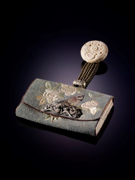 上圖的宴會小手袋是今次展示歷史最悠久的作品,出自日本工匠之手。圓形小圓章是象牙製,配以袋身的刺繡,更顯貴麗。