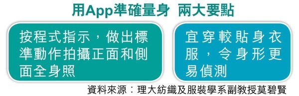 莫說,用戶可按量度結果到網店購物,期望將來能與網商合作,向用戶推薦相應尺碼和襯搭。她又指,數據庫內的人體掃描資料已包括不同人種,惟暫時只有成年人體型資料,故程式暫時只對應成年人用戶。