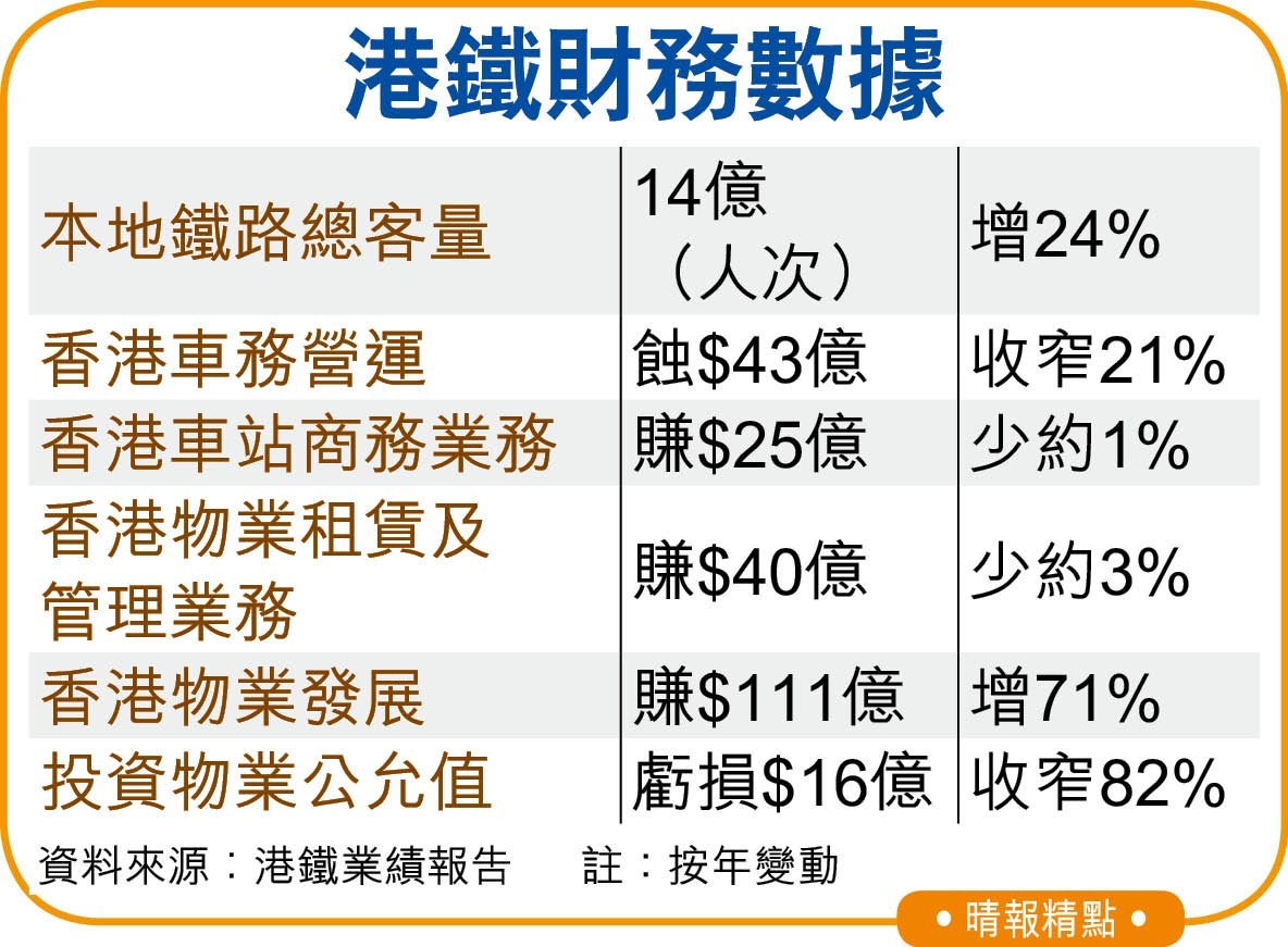 港鐵物業發展表現向好,去年賺95.5億元。