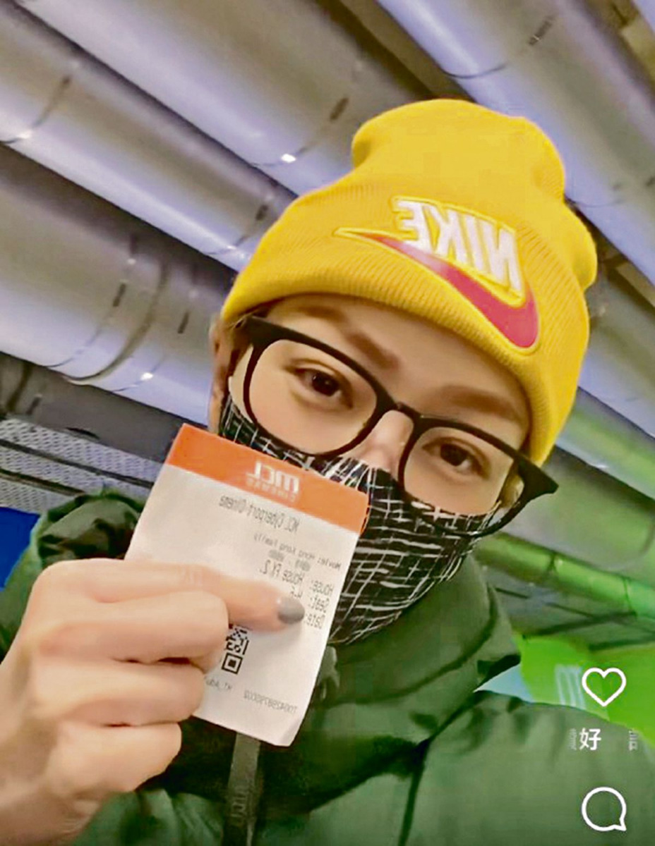 前日鄭秀文自拍《過時•過節》戲飛,透露出埠前入戲院支持港產片。(IG截圖)
