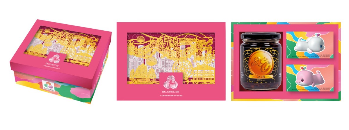 十五運會和殘特奧會別注版XO醬禮盒,由香港知名紙雕藝術家黃文翰設計,透過繁複而精巧的鏤空層疊紙藝技法,設計強調層次感與光影效果將香港維多利亞港的繁華景象細膩呈現,並融入中式帆船、天星碼頭到中環摩天輪等標誌性建築與場景。飛龍躍動更展現朝氣活力,與十五運會和殘特奧會的動感氛圍互相呼應,隨盒附送一對可愛的「喜洋洋」和「樂融融」筷子托。