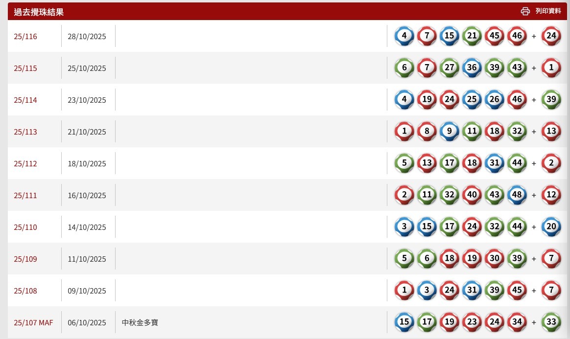 過去十期攪珠結果