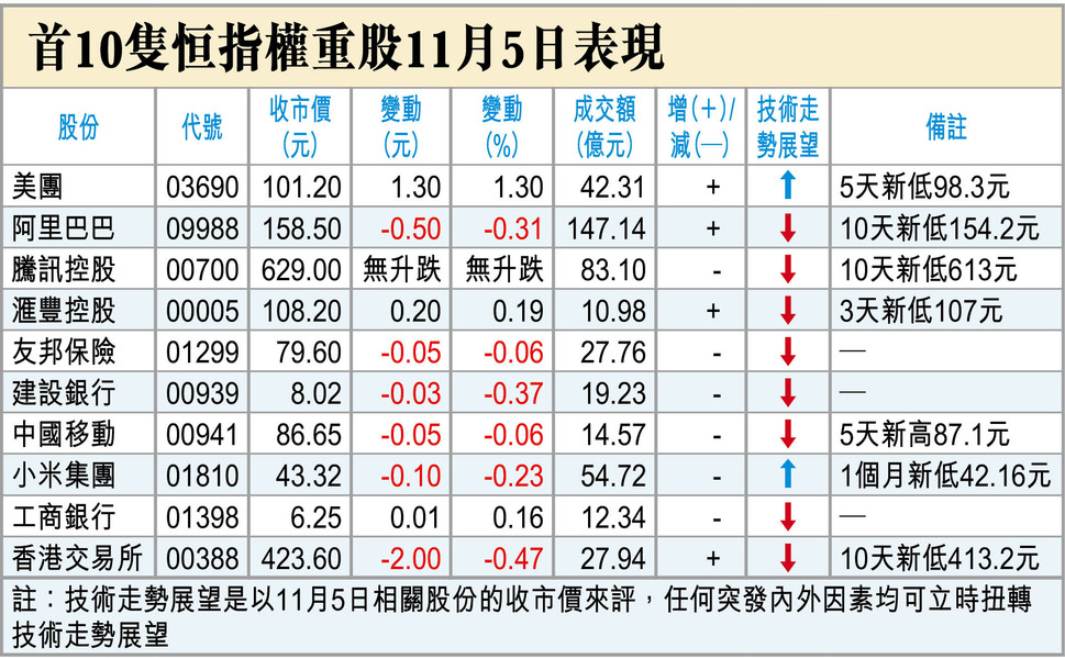 《金融界》報道,11月5日,港股低開低走震盪向上,恒指盤中一度翻紅,截至收市,恒生指數跌0.1%,報25935點,恒生科技指數跌0.6%,報5785點,國企指數跌0.1%,報9163點,紅籌指數漲0.1%,報4114點。