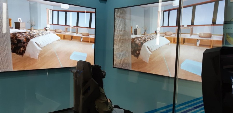 有客戶在使用VR看房服務,從熒幕可見房間非實景圖而是3D圖像 (楊英傑攝)