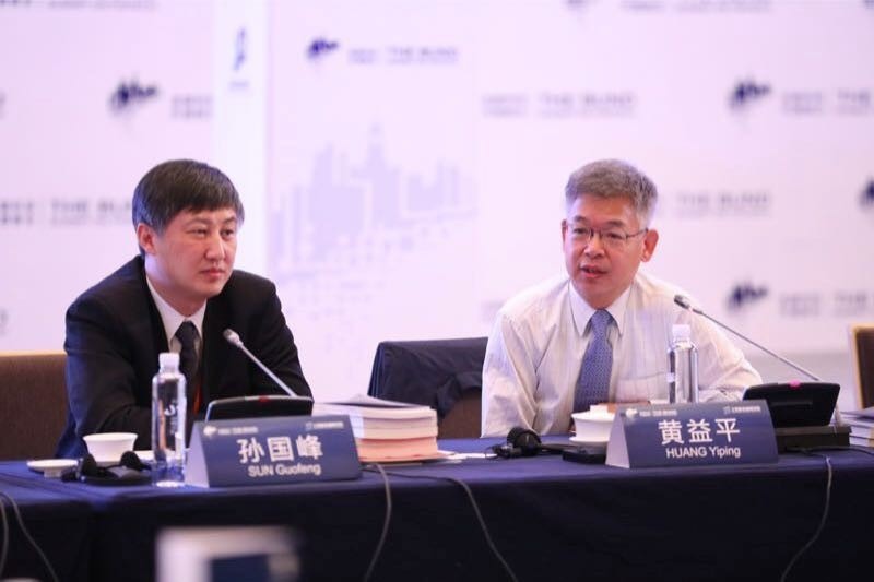 人行金融研究所所長孫國峰及北大國家發展研究院副院長黃益平在外灘峰會上發言 (主辦方提供圖片)