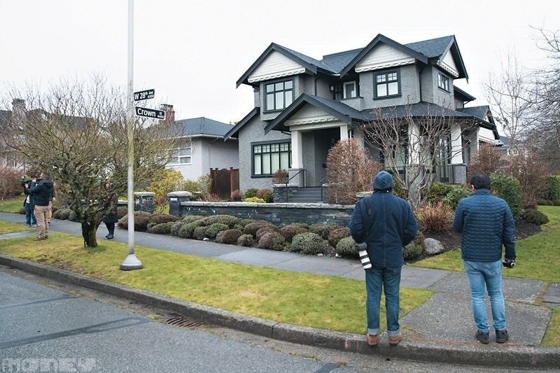 獲保釋的孟晚舟返回其溫哥華住所,眾多記者在門外等候。