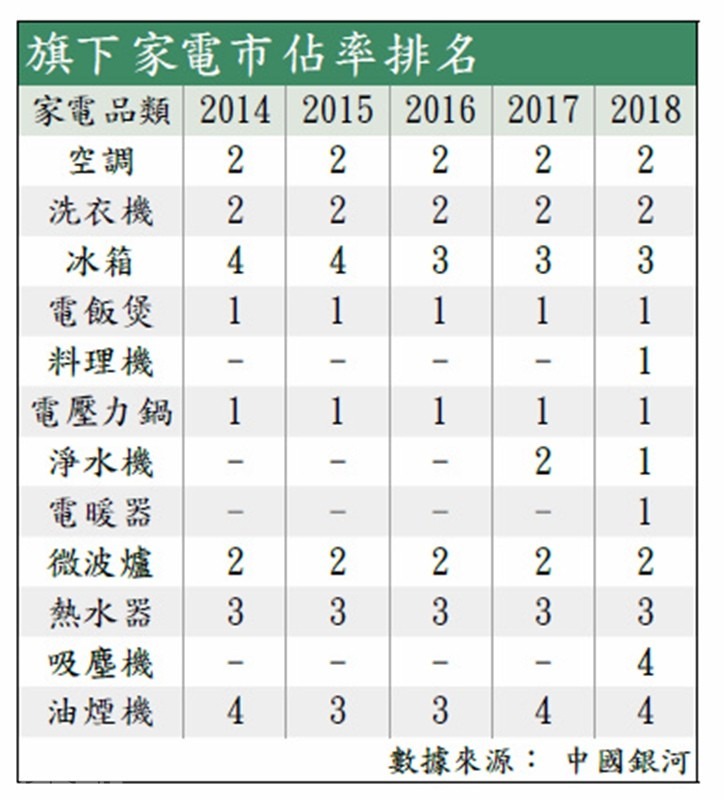 作為全國最大家電企業,相信讀者對美的這個名字並不陌生。美的產品綫極之廣泛,傳統產品例如空調、洗衣機當然不少得,另外亦幾乎覆蓋市面上所有生活用到的電器,如電飯煲、吸塵機等,市佔率全部排在5名之內(表)。