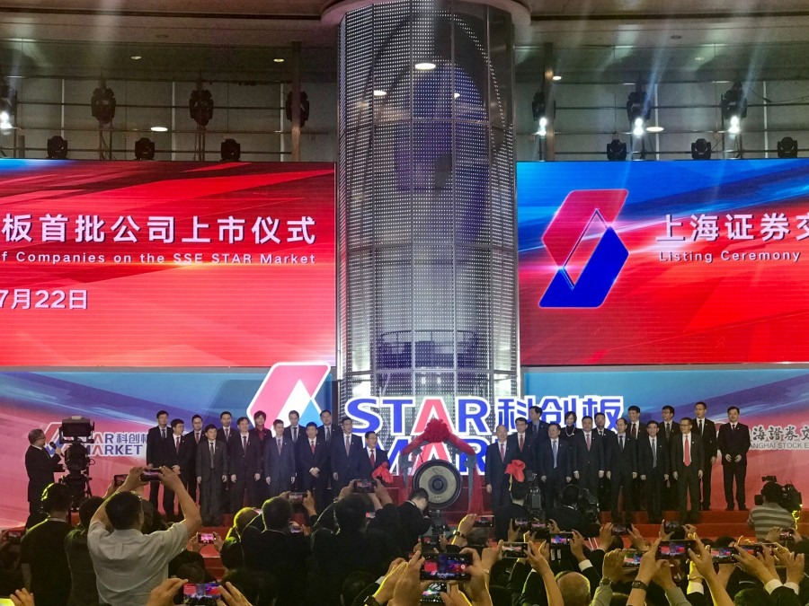 去年7月22日,科創板首批25家企業在上交所交易大廳鳴鑼開市,是中國資本市場改革的重要里程碑。(林雯婕攝)