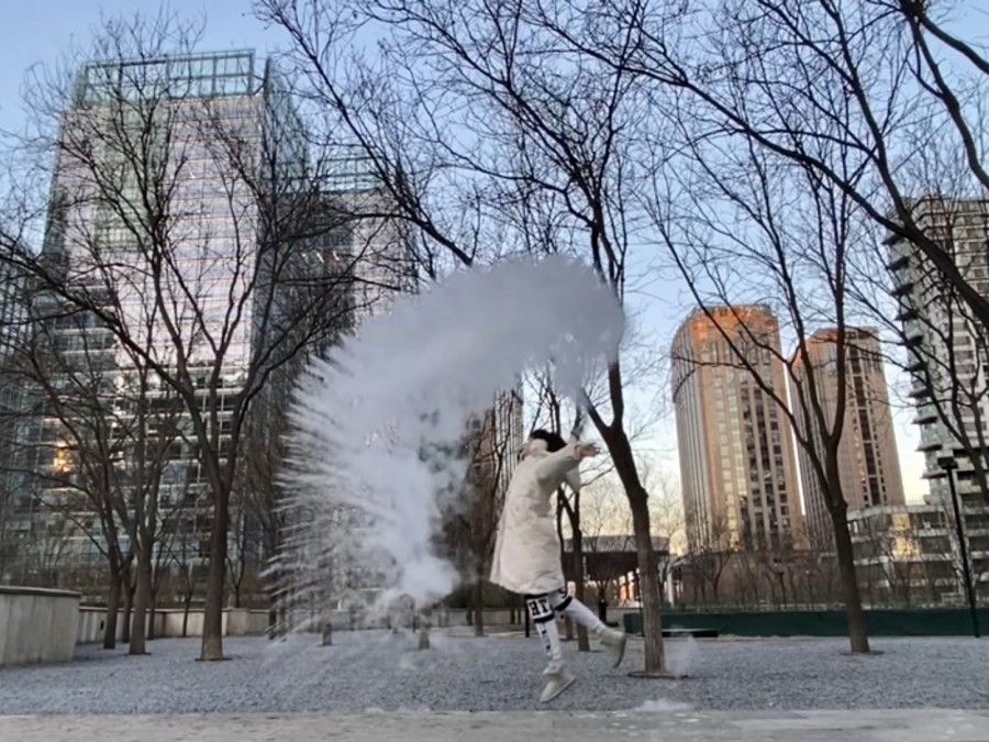 這麼冷的天如何苦中作樂?最開心的是,在凜冽寒風之下,漠河特產「潑水成冰」幾日間迅速普及。北京人終於都能體驗一把潑水成冰的快樂。之前在社交平台上總是能刷到的東北雪鄉民眾的日常炫技玩意兒,特別好看。玩法非常簡單,就是把手中的水潑出去。只要潑水的姿態掌握得好,就能在身體周圍形成非常好看的冰花。潑水成冰的原理是水潑出去馬上變成水蒸氣,水蒸氣再凝華成冰晶。