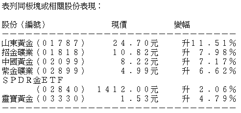 中美關係惡化推金價破頂 山東金飆一成一 招金漲8%