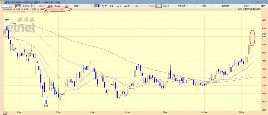 東航(00670)半日升4.23%,報3.7元。(經濟通HV2系統截圖)