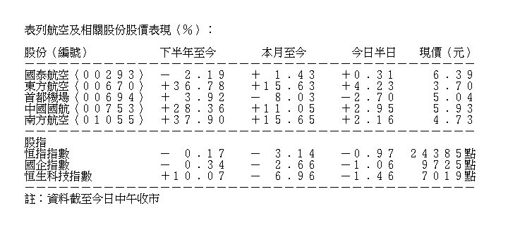 國泰(00293)亦受惠近日航空股炒復甦,惟本地疫情尚未受控,本月累計升幅落後其他中資航空股,只有1.43%。今日半日收升0.31%,報6.39元。