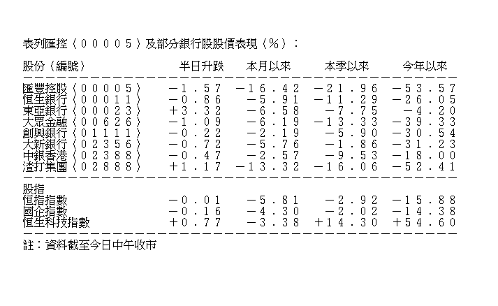 截至中午收市,匯控僅收跌1.57%,報28.25元;成交約5215萬股,涉資14.58億元。以現價計,暫連跌3日,累計跌幅8.72%。