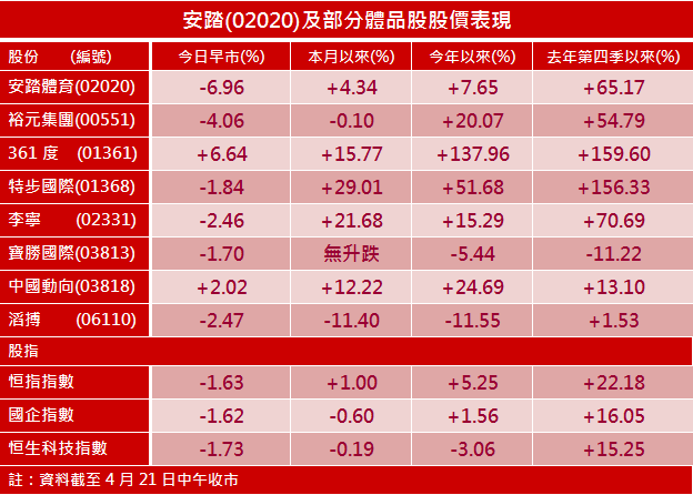 【股東骨水】安踏大股東減持 黃偉康:觀望能否企穩配股價勿博彈
