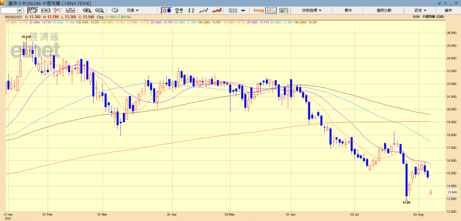 中國飛鶴(06186)開市急跌,暫連跌三日。(經濟通HV2系統)