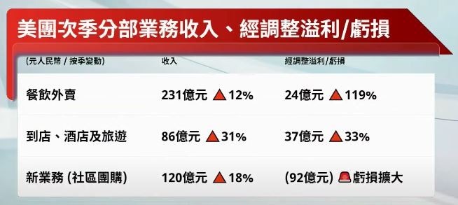 美團上季分部業務收入按季均有增長,惟新業務的經調整虧損擴大至92億元人民幣。(《開市Good Morning》截圖)