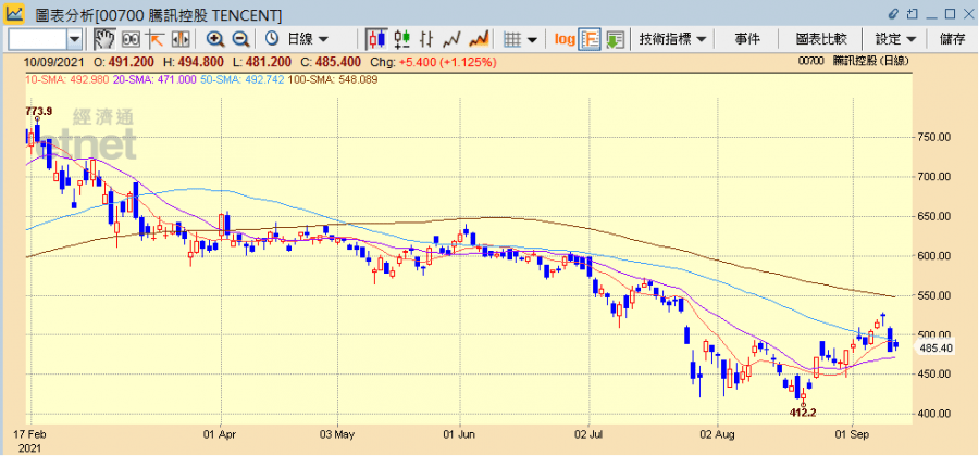 監管風暴重臨,昨(9日)吹散一眾科網股,其中受累中宣部、新聞出版署等多個部門約談,騰訊(00700)和網易(09999)兩間網遊龍頭公司股價急跌,午後更傳出《南華早報》引述知情人士指監管部門將暫停審批所有新網絡遊戲,騰訊尾市愈跌愈急,最終收市插8.5%,成交急增至約267億元,而網易亦瀉一成一收報133.9元。《南華早報》其後改稱中國政府只是放慢新網遊審批,今日(10日)兩股股價初步回穩但彈力不足,騰訊昨雖獲北水力撐,淨買入22.2億元,卻高開逾2%後愈升愈少,其後只升約1%,看來一日監管陰霾未散,騰訊股價依然彈唔起。