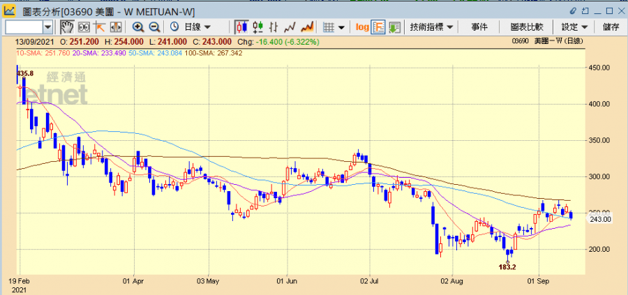 上周內地互聯網監管風暴重臨,騰訊(00700)和網易(09999)遭中宣部等多個部門約談,又傳會放緩新網絡遊戲審批,而據報8月的國產網絡遊戲審批信息至今仍未公布,可能是因為遊戲提交審核時要符合防止未成年人沉迷網遊的最新要求,要留給企業一定時間重新走流程。雖然近日幾間科網巨頭已很「自律」,繼騰訊延遲推出《英雄聯盟手遊》後,中國演出行業協會聯合騰訊旗下騰訊視頻和阿里巴巴持股的小紅書等14家平台共同發布自律公約,但監管看來遠未到盡頭,最壞時刻未過,中紀委又發文稱,反壟斷沒有禁區,沒有例外。另據報中國正尋求分拆阿里巴巴(09988)旗下螞蟻集團的支付寶,並為其貸款業務另建應用程式,拖累其股價今日(13日)急跌逾4%。另一方面,國家人社部等多部門對美團(03690)、滴滴、阿里、騰訊等就企業保障勞動者權益開展聯合指導,美團急挫逾半成。