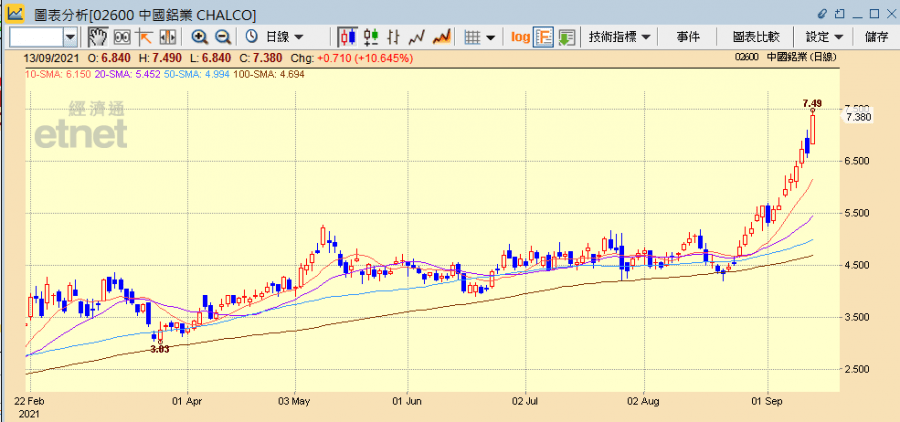 鋁價屢創新高供應緊張短期難解決 中鋁股價急升一成
