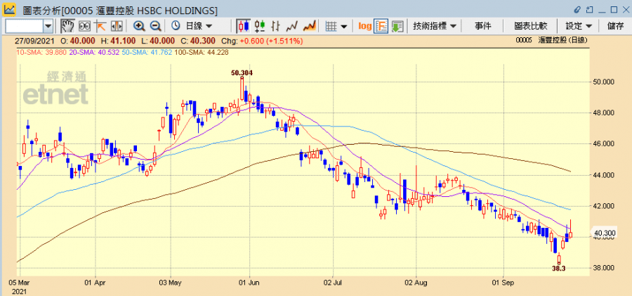 匯控今日收市升1.51%報40.3元。(經濟通HV2系統截圖)