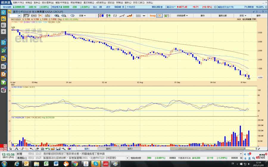 (佳兆業股價日線圖,經濟通H2系統截圖)