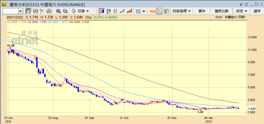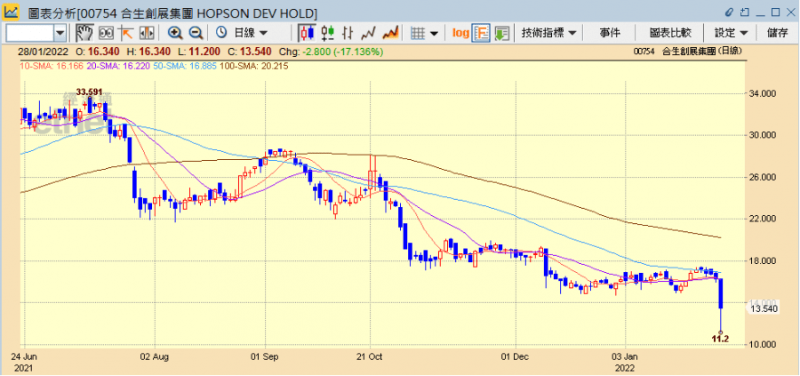 內房板塊早前一度回暖,惟隨著近期整體市況欠佳,加上個別房企仍不時傳出負面消息,整個板塊再度轉趨疲弱,就算有成功售產或還債的消息,對股價刺激作用亦不大。現又再傳出羅兵咸永道會計師事務所辭任合生創展(00754)核數師一職,另有傳內地當局擬分拆出售恒大(03333)大量資產還債,恒大又因債務違約遭橡樹資本奪元朗地皮。今日(28日)合生創展股價最多急瀉逾三成,收市仍跌約17%,恒大則承接昨日(27日)跌勢再跌約4%,其他內房股亦普遍下跌。