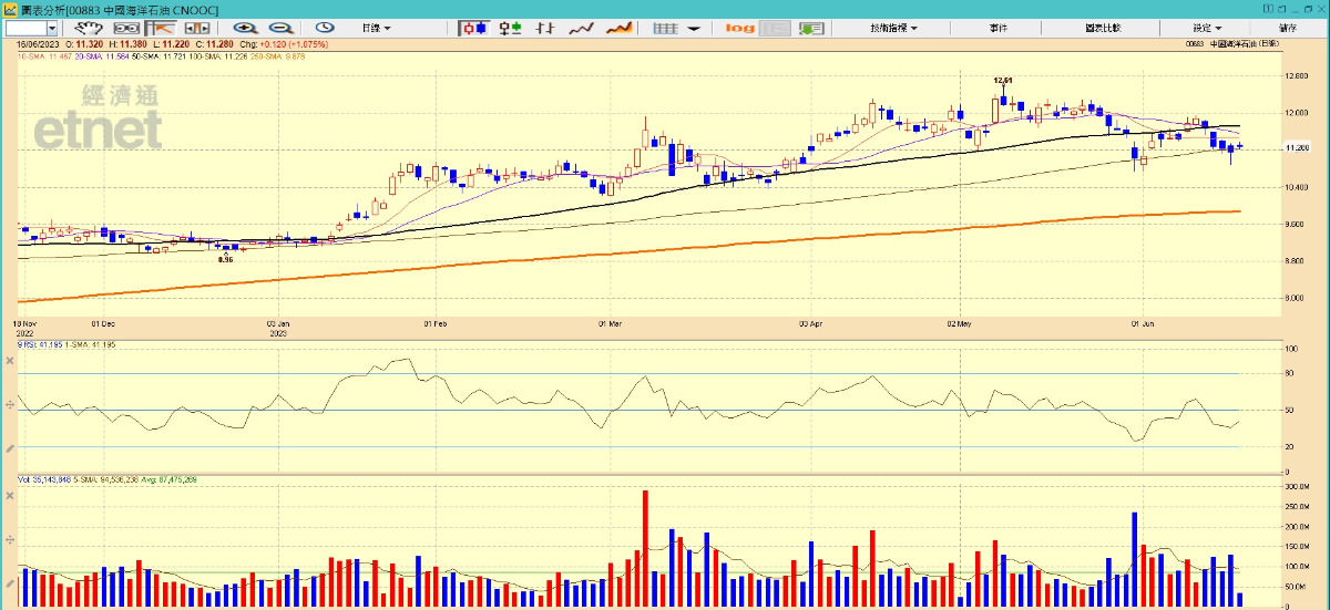 中海油股價走勢。(經濟通HV2報價系統截圖)