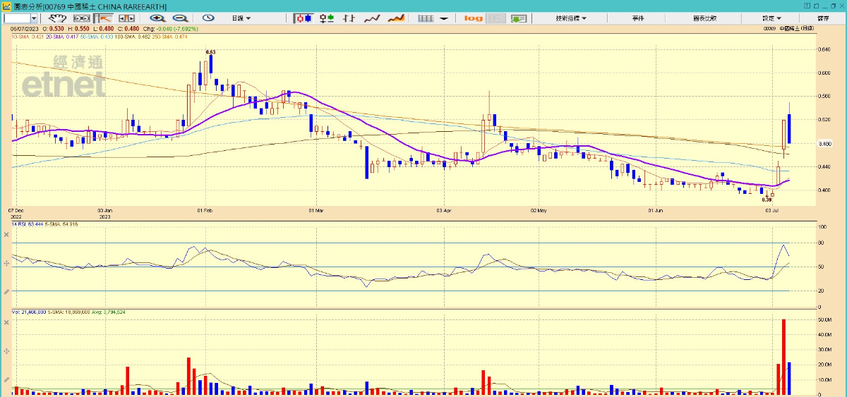 中國稀土股價走勢。(經濟通HV2報價系統截圖)