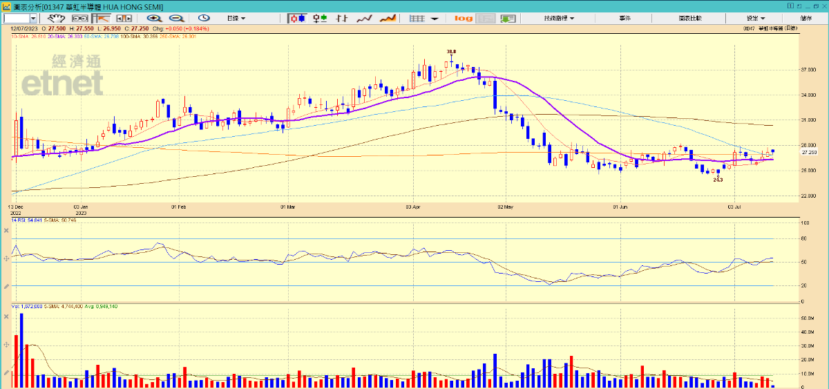 華虹股價走勢。(經濟通HV2報價系統截圖)